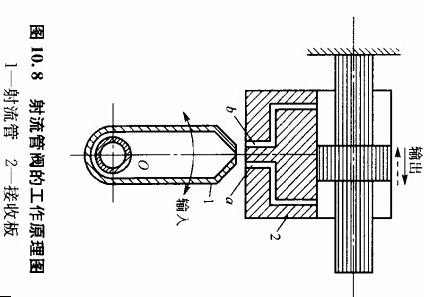 如圖10.8所示為伺服壓力機(jī)射流管閥的工作原理。射流管閥由射流管1和l接收板2組成。伺服壓力機(jī)射流管可繞O軸左右擺動(dòng)一個(gè)較小的角度,接收艇上有兩個(gè)并列的油孔U、b,分別與液壓缸兩腔相通。壓力油從管道進(jìn)入射流管后從錐形噴嘴射,經(jīng)袖孔α、b進(jìn)入i後斥缸兩腔。當(dāng)噴嘴處于兩油孔的中間位置時(shí),液壓缸左右兩腔內(nèi)油液的壓力相等,這時(shí)缸不動(dòng)。當(dāng)輸入信號(hào)使射流管繞O軸向左擺動(dòng)一小角度時(shí),進(jìn)入孔b的油液壓力就比進(jìn)入孔α的油液壓力大,這時(shí)液壓缸向左移動(dòng)。由于接收板和缸體連接在一起,接收板也向左移動(dòng),形成負(fù)反饋,噴嘴恢復(fù)到中間位置,被壓缸停止運(yùn)動(dòng)。同理.當(dāng)輸入信號(hào)便射流管繞。軸向右擺動(dòng)一小角度時(shí),進(jìn)入孔U的油液壓力大于孔b的訕液壓力,液壓缸向右移動(dòng),在負(fù)反饋信號(hào)的作用下,噴嘴逐漸恢復(fù)到中間位置,缸停止運(yùn)動(dòng)。